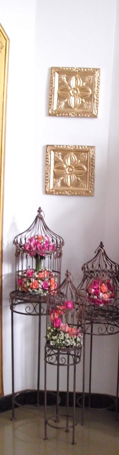 Uma ideia e que pode ser usada tanto de dia como a noite são os arranjos de flores em gaiolas. Eles ficam lindos e dão um charme a mais.